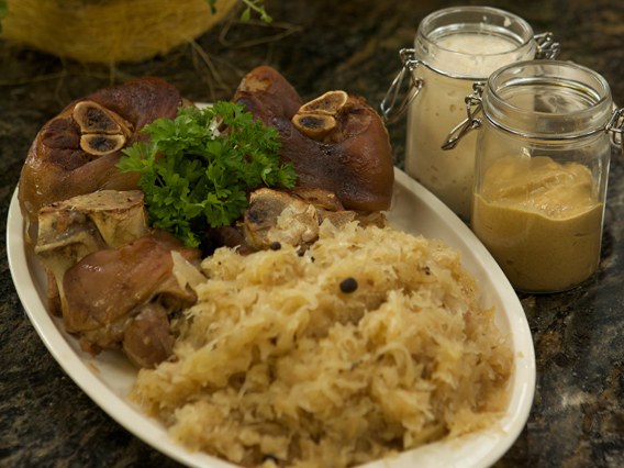 Podawać z kapustą, chrzanem i musztardą. W podobny sposób można też przyrządzić boczek.