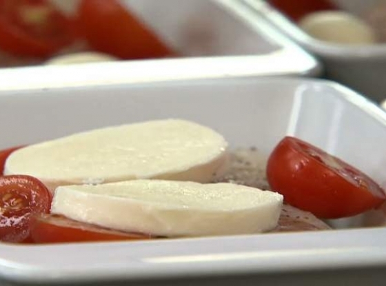 Piec przez 30 minut w piekarniku nagrzanym do 180 st. C. Podawać udekorowane listkami bazylii.