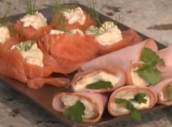 Płaty marynowanego łososia zwinąć w „różę". Do środka dać sos tatarski. Przybrać natką pietruszki.