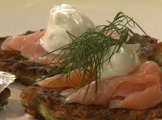Podawać z kleksem kwaśnej śmietany i wędzonym łososiem. Można udekorować koperkiem.