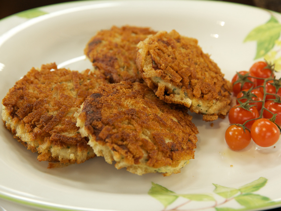 Formować podłużne kotleciki – z tej porcji mięsa wyjdą cztery. Zanurzać w roztrzepanym jajku i panierować w paskach czerstwego pieczywa (chleb należy podsuszyć i pokroić w zapałkę). Smażyć na klarowanym maśle na jasnozłoty kolor z obu stron. Przed podaniem odsączyć z nadmiaru tłuszczu na ręczniku papierowym.