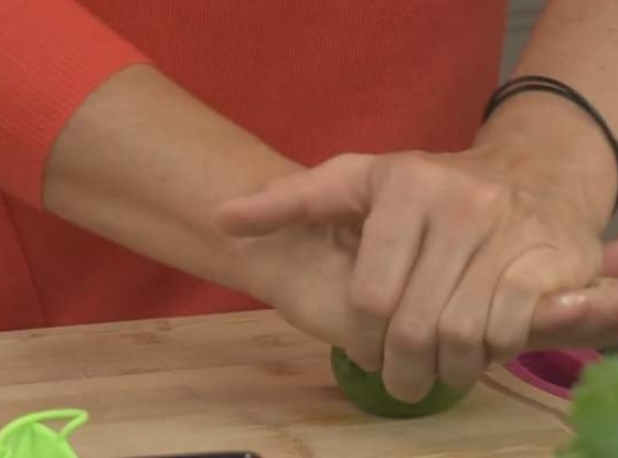 Z zupy wyjmij kawałki trawy cytrynowej. Dodaj sok z limonki. Całość zmiksuj na gładki krem. Dopraw do smaku solą i pieprzem. Podawaj udekorowane posiakaną kolendrą.