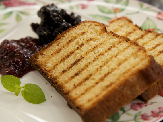 Podawać z konfiturą wiśniową, na zimno lub na ciepło - podpieczone na ruszcie.