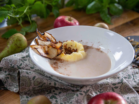 Podawać z tłuczonymi ziemniakami z cebulką. Można udekorować plasterkami suszonych jabłek.