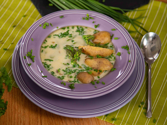 Zalać ciepłym wywarem. Gotować aż szparagi lekko zmiękną. Dorzucić główki.