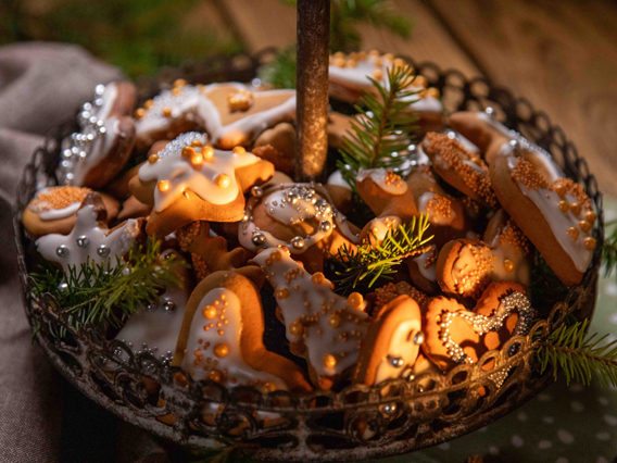 Po wystudzeniu udekorować lukrem (sok z cytryny wymieszać z cukrem pudrem) i ozdobami z cukrowymi.