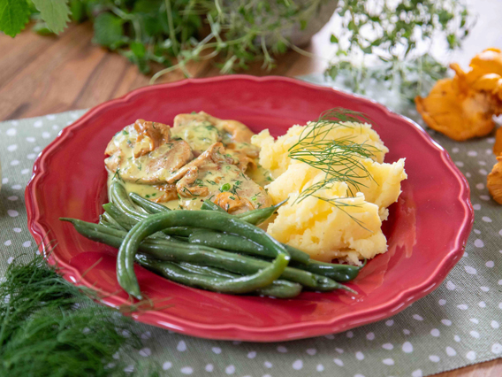 Podawać z tłuczonymi ziemniakami i fasolką szparagową z palonym masłem.