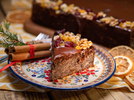 Czekoladę roztopić w kąpieli wodnej. Wlać śmietankę. Wymieszać. Polewą pokryć wystudzony makowiec. Na brzegach ułożyć bakalie.